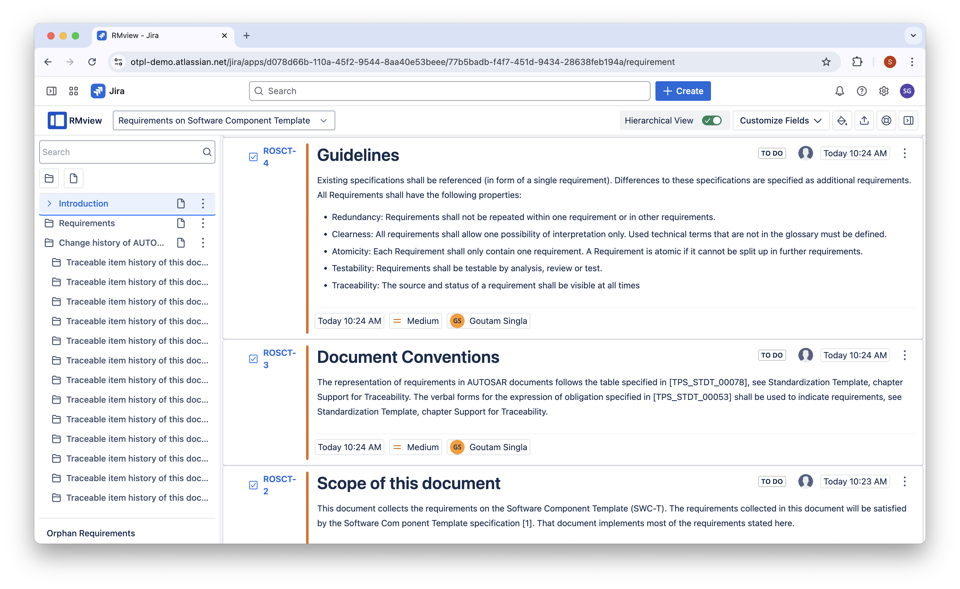 RMview brings document-style requirement management into Jira with folder hierarchies, requirement cards, hierarchy view, and CSV export, making requirements structured, traceable, and audit-read.